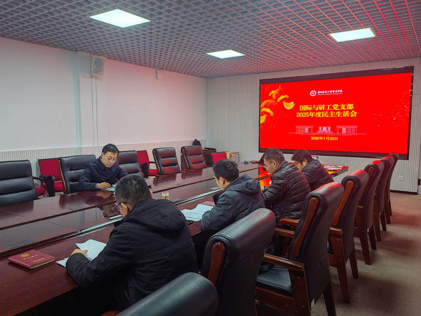 根据《关于开好2025年度处级以上领导班子民主生活会的通知》(校党组字〔2025〕12号)要求,1月22日国际与研工党支部召开民主生活会,会议由党支部书记王国保主持。副校长张聚伟出席会议并作总结讲话。