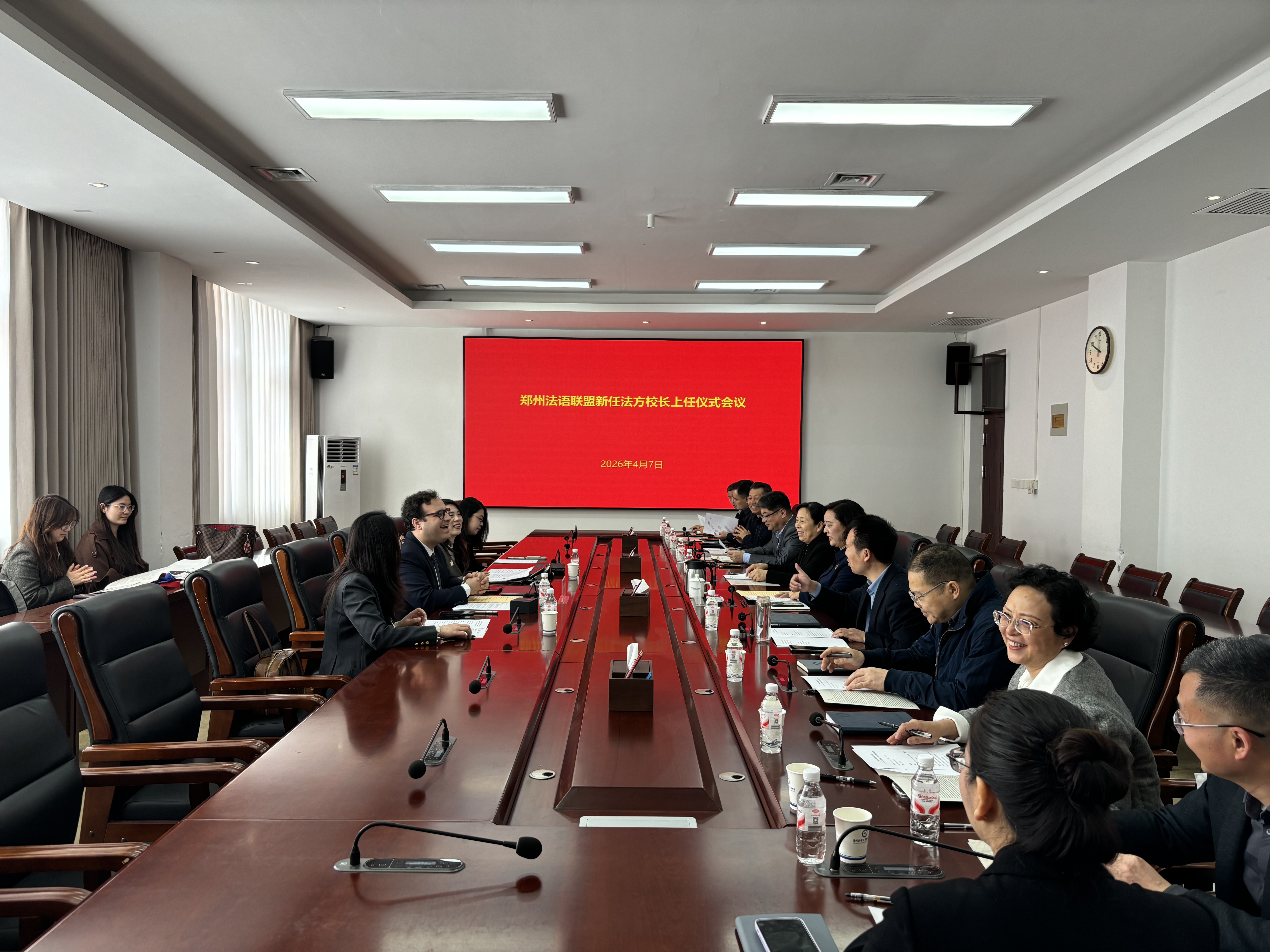 4月7日,我校举行郑州法语联盟法方校长宗逸瑞履新交流座谈会,副校长陈静出席仪式并致辞。